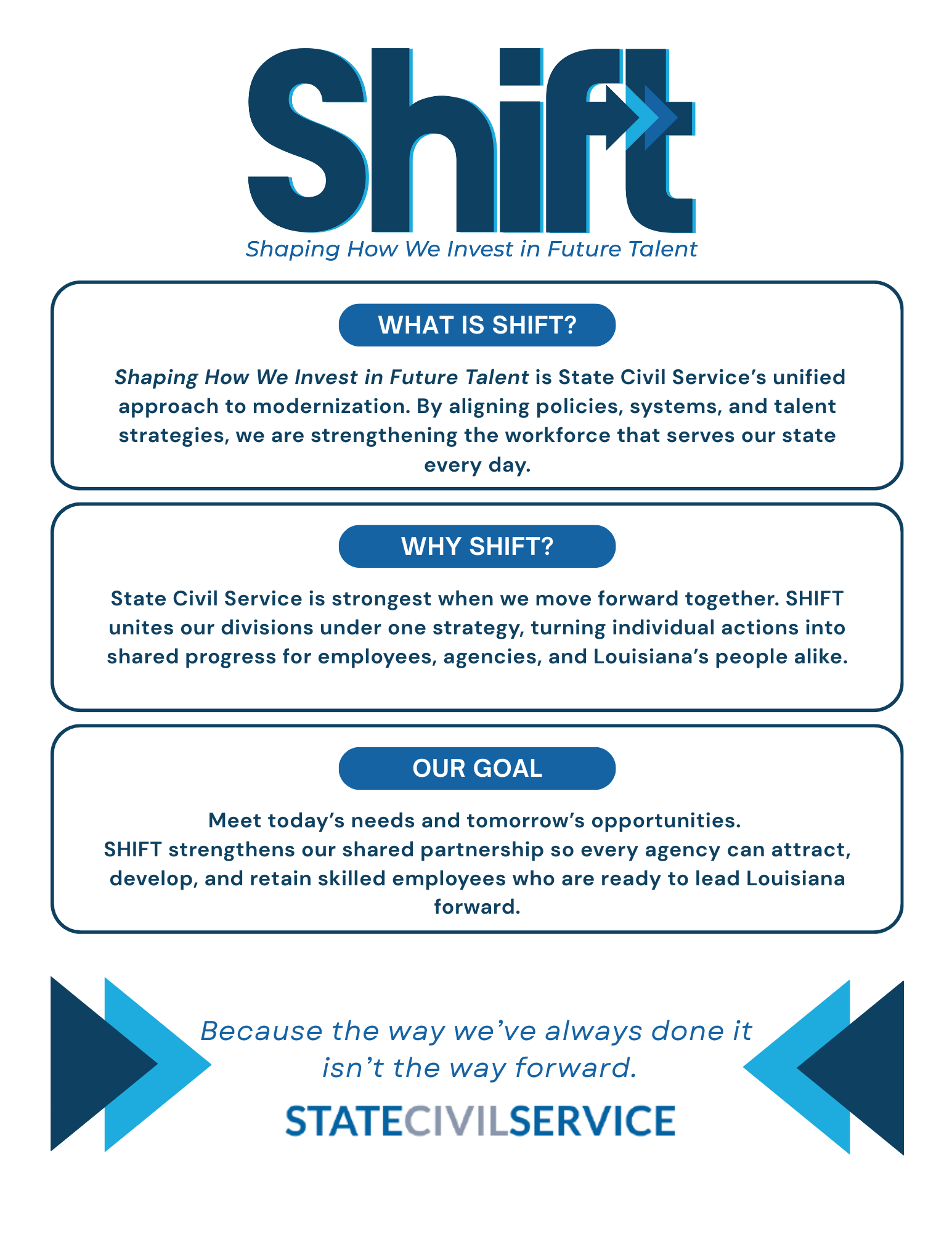 Collectively, these initiatives modernize the applicant experience, strengthen agency-level decision-making, and position Louisiana as an employer of choice.